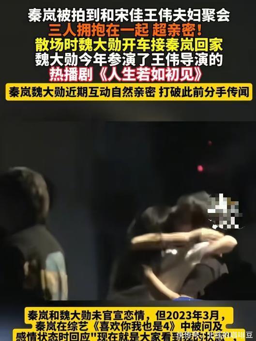她和魏大勋也就是一起出演了这部剧后二人就频传绯闻。 媒体多次拍到二人手挽手一同出行,行为非常甜蜜。 网上还有段视频是秦岚与宋佳夫妻一起聚餐,吃完饭后姐妹俩拥抱分别。