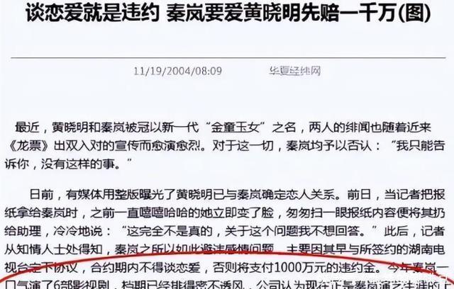 之后她的事业如日中天戏约不断,从小配角逐渐蜕变成主角。 就在她事业顺风顺水的时候,她却把自己推向万丈深渊。 事业爱情双重打击 当时她拍摄《还珠3》时和饰演肖剑的黄教主相识, 之后二人又在《龙票》中二次合作,这一次二人互生情愫走在一起。 但由于当时秦岚正值事业上升期,公司跟她签了“禁爱令”合约。